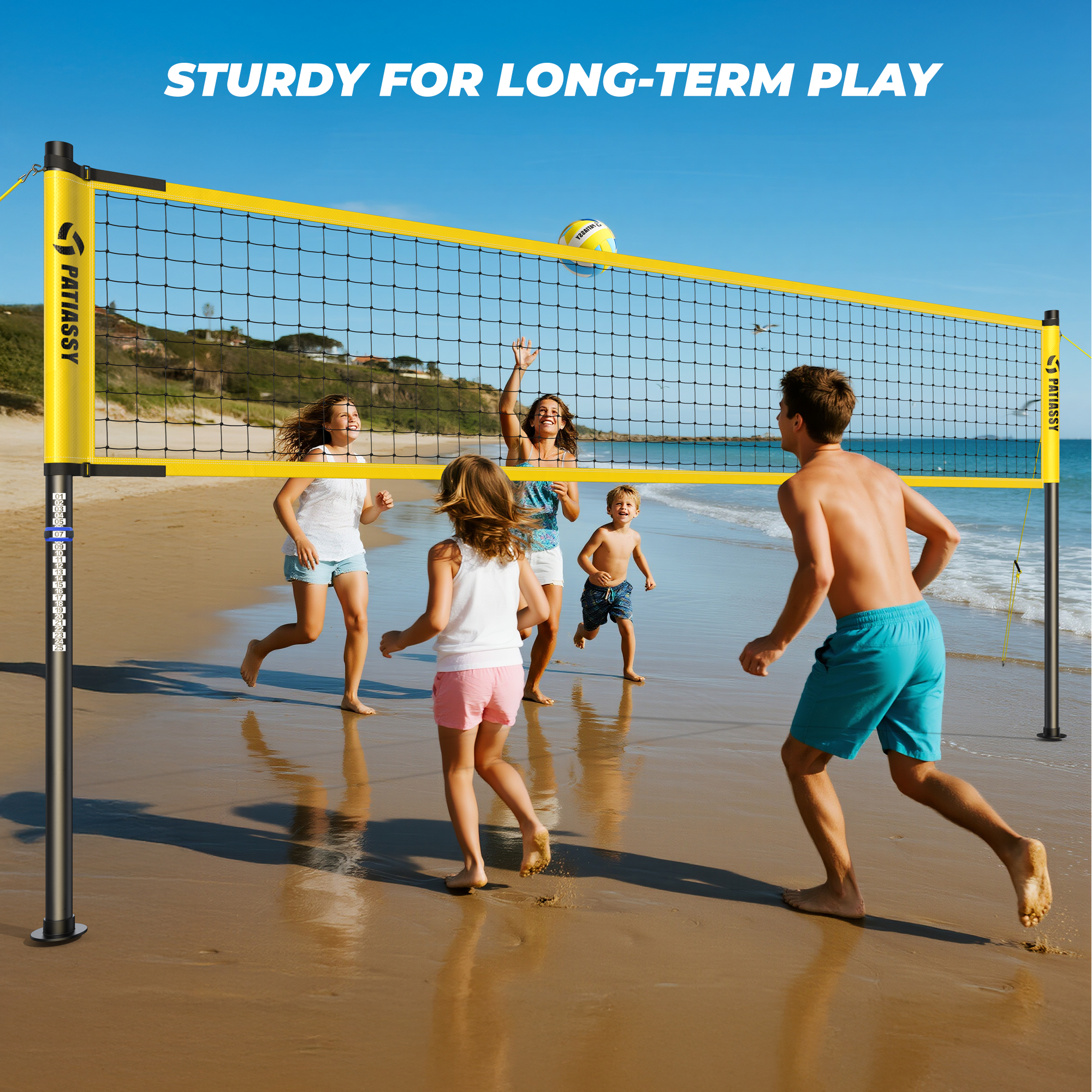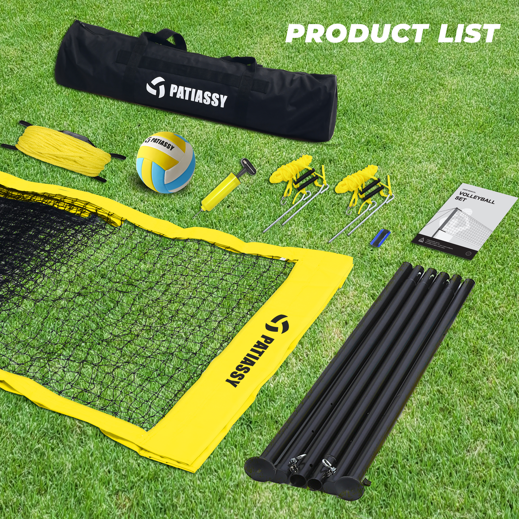Patiassy Outdoor Portable Volleyball Net Set System for Backyard – Quick & Easy Setup Adjustable Height Steel Poles, PU Volleyball, Pump and Carrying Bag