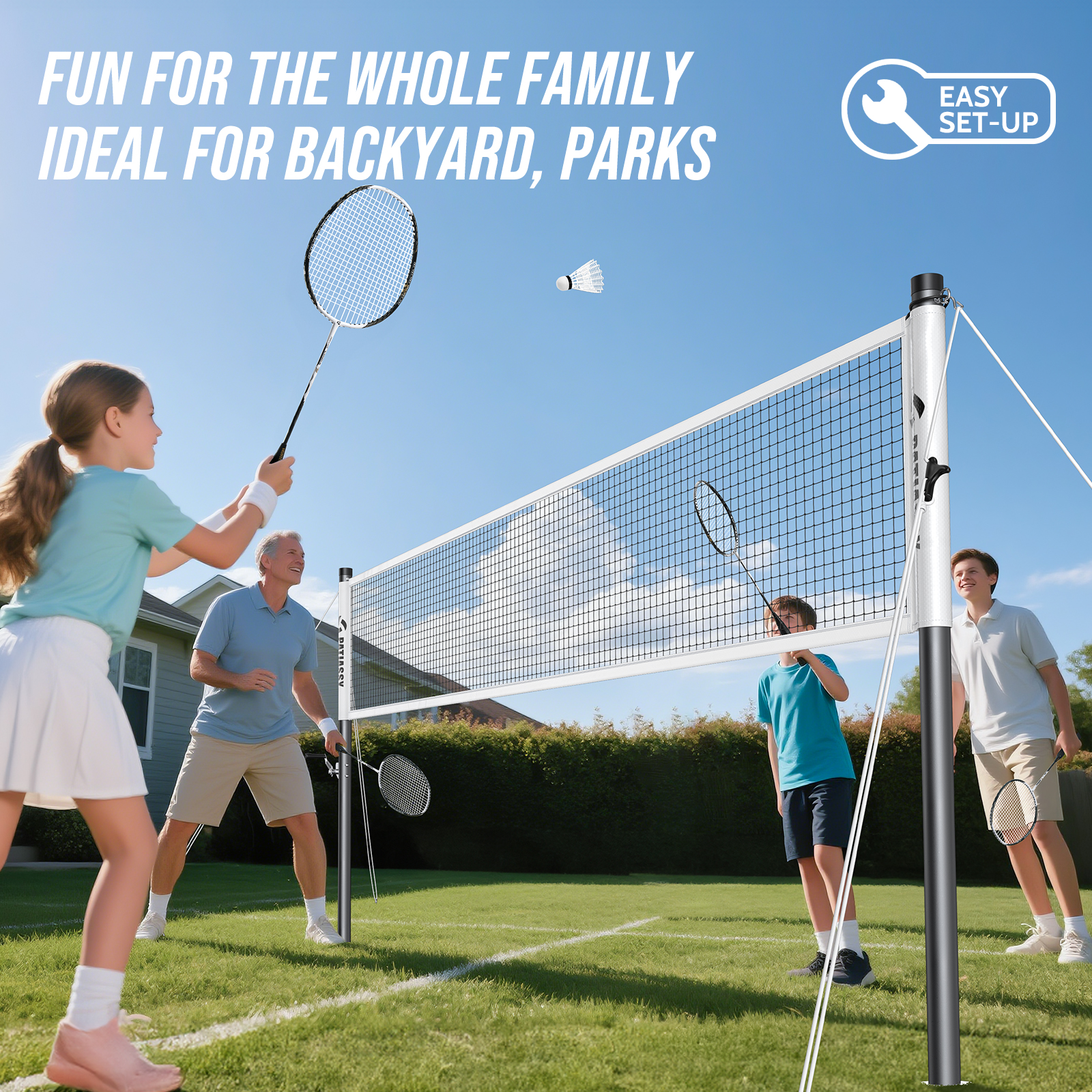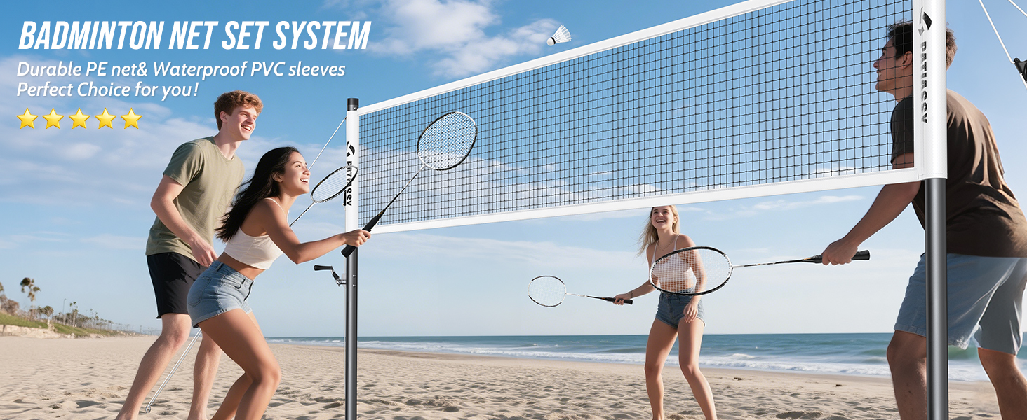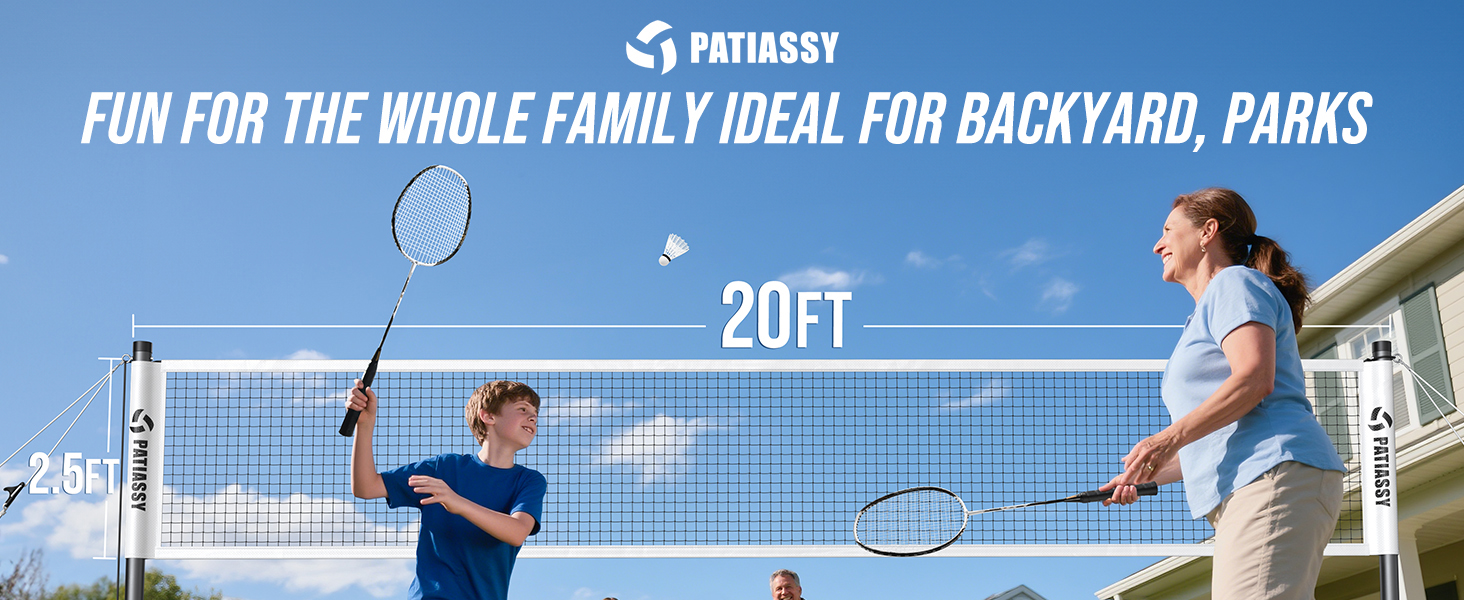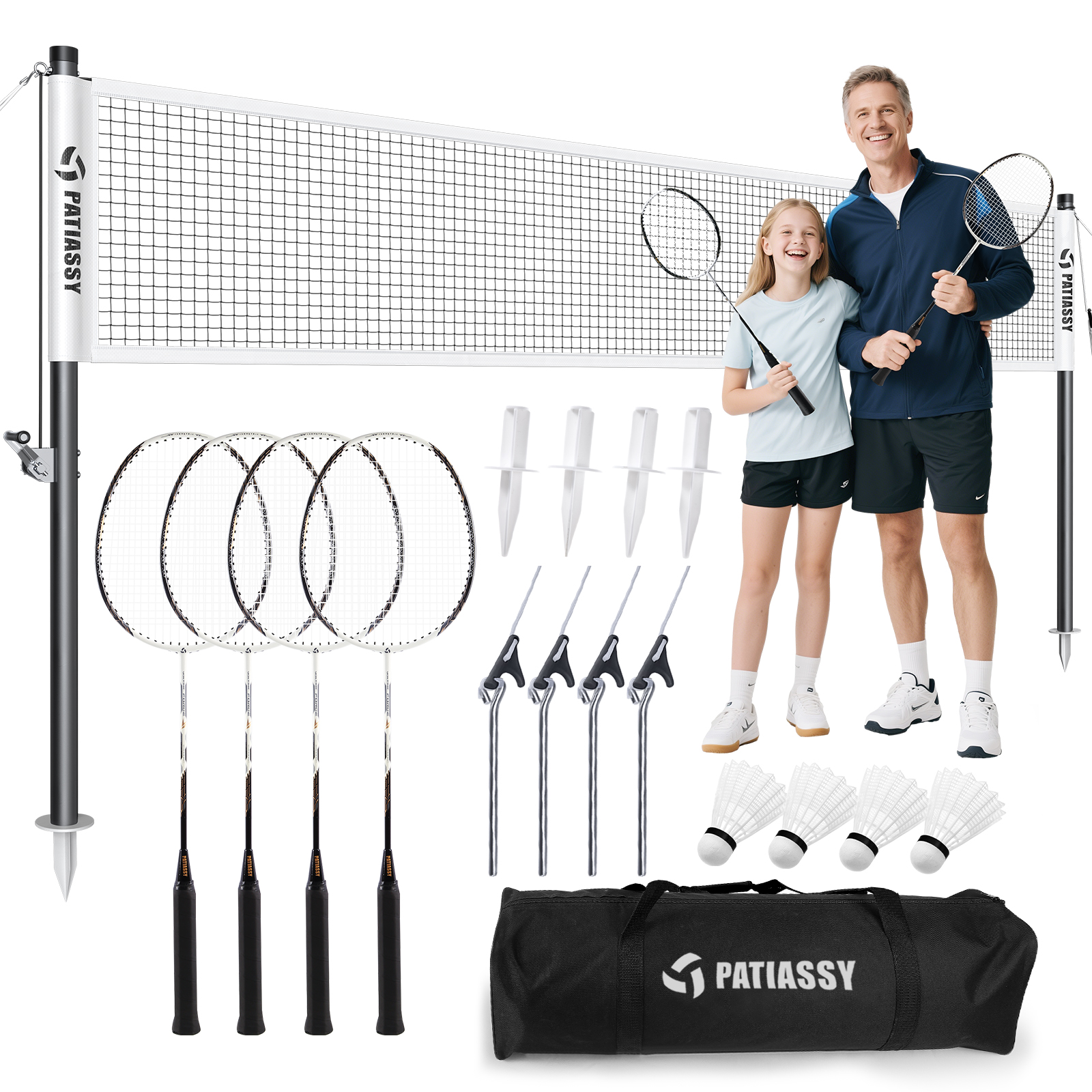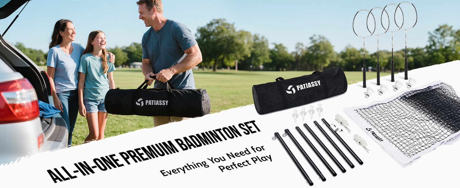 Patiassy Badminton Set for Backyard, Professional Badminton Net with 4 Badminton Rackets, Badminton Shuttlecocks and Carrying Bag