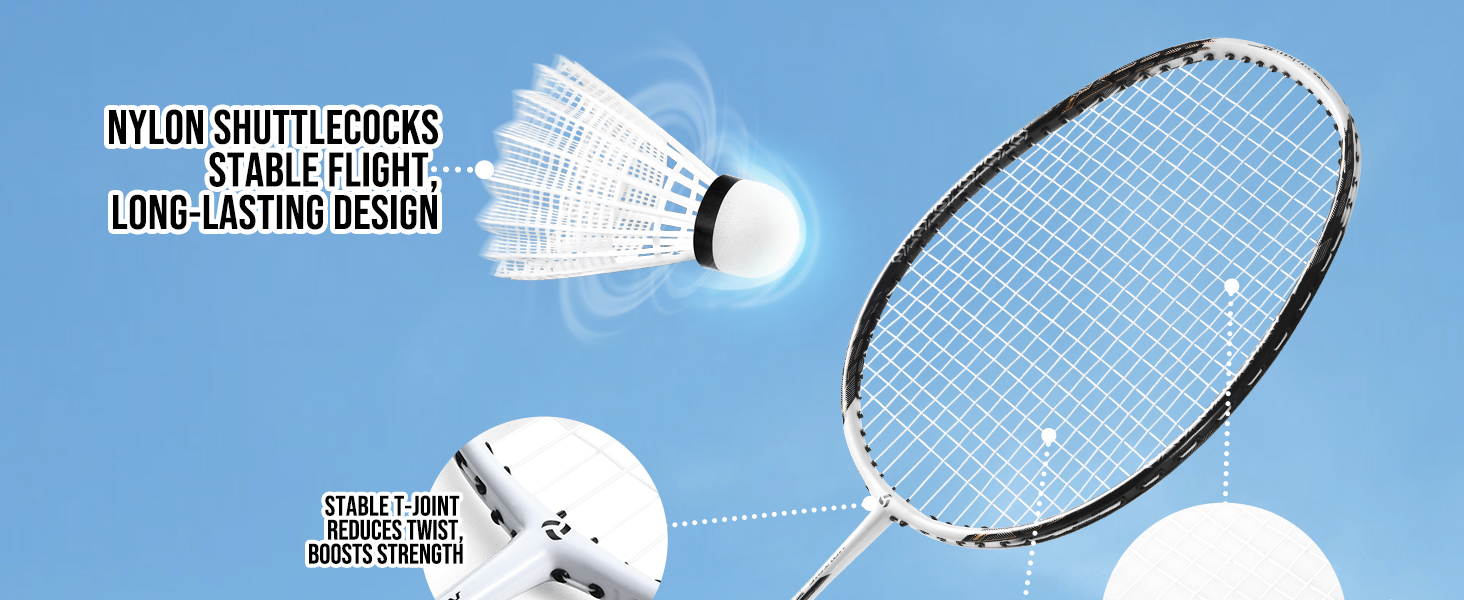 Patiassy Professional Badminton Set with Carbon Aluminum Badminton Rackets Set of 4, Outdoor Portable Badminton Net with Winch System, 4 Nylon Badminton Shuttlecocks and Bag quantity