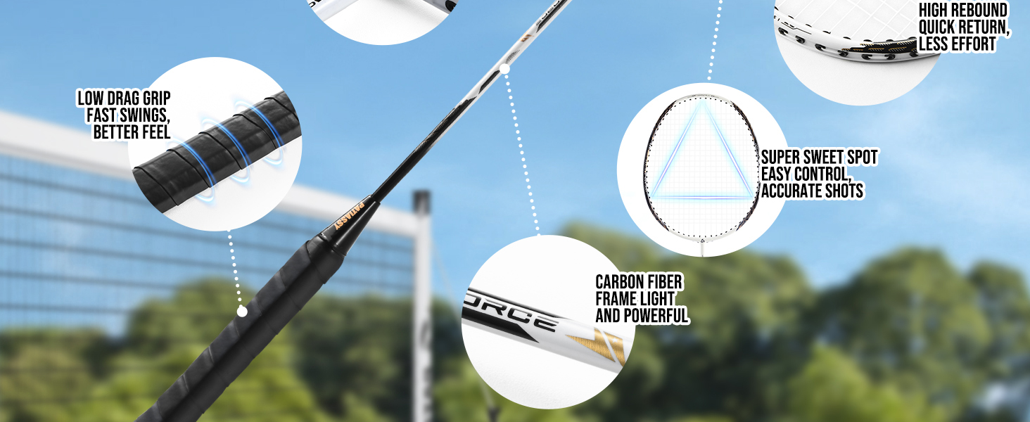 / Patiassy Professional Badminton Set with Carbon Aluminum Badminton Rackets Set of 4, Outdoor Portable Badminton Net with Winch System, 4 Nylon Badminton Shuttlecocks and Bag