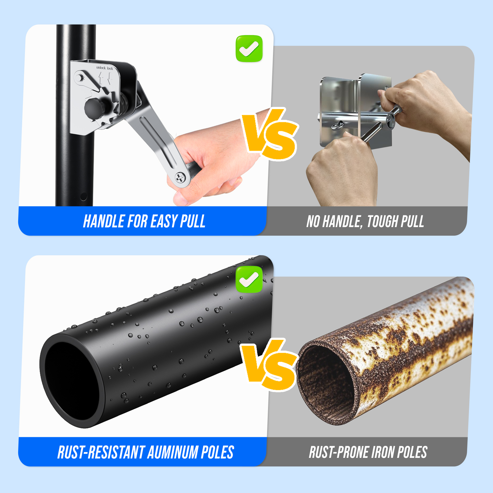 - Unique Winch System: The heavy-duty galvanized steel winch system is designed to offer more precise net adjustments to keep the net taut and minimize the sagging. The volleyball net has a tension ropes and ground stakes, making the whole net more stable